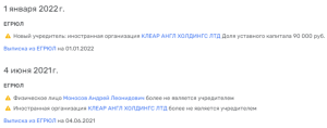 Еще более подозрительно, что владельцем числится виргинский офшор CLEAR ANGLE HOLDINGS LTD. А вот до этого в собственниках компании находился сам Андрей Моносов.