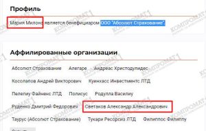 В расследованиях про недвижимость Наили Аскер-Заде фигурируют кипрские офшоры — RENAGTON INVESTMENTS LIMITED и ERALMOR HOLDINGS LIMITED. Обе на сегодняшний день ликвидированы, ранее были связаны с действующей компанией MITTELMEER SECRETARIES LIMITED, директором которой выступает Мария Милона. Она не только руководитель целый россыпи офшоров, но и бенефициар ООО «Абсолют Страхование», входящей в группу «Абсолют» Александра Светакова.