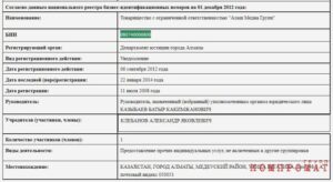 Выписка об участниках ТОО «Алаш Медиа Групп» в 2012 году