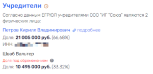 До января 2022 года АО «СТП-ЛСП» принадлежало тому же самому ООО «ИГ «Союз», которое сегодня владеет «Интермашем». Собственник 66% «ИГ Союз» — Кирилл Петров. Еще порядка 33% у Шваба Вальтера — его доля находится в залоге у Владимира Петрова.