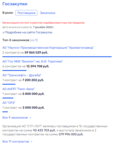 В итоге АО «СТП-ЛСП» выступило поставщиком по госконтрактам почти на 100 млн рублей, заказчиком — почти на 580 млн рублей. А сегодня компания оказалась включена в Реестр недобросовестных поставщиков.