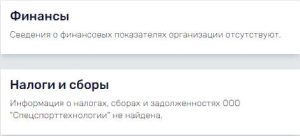 Например, ООО «Спецспорттехнологии», занимающееся разработкой программного компьютерного обеспечения, «работало» с 2005 по 2016 г., но сведения о финансах и налогах отсутствуют.