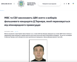 Письмо главы МВД и СБУ в Центризбирком Украины с просьбой снять Дмитрия Некрасова-Торнера с предвыборной гонки поскольку он скрывается от международного правосудия. Скрин с сайта МВД Украины
