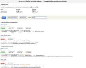 Итак, в ЕГРЮЛ есть Константин Дмитриевич Денисов, на которого были оформлены доли в четырех компаниях Москвы и Подмосковья.
