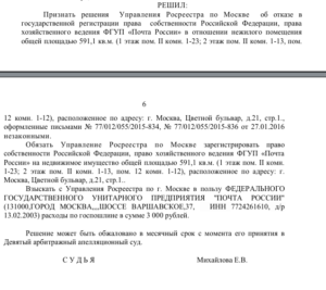 В ходе расследования выяснилось, что в 2016 году часть нежилых помещений (591,1 кв. м) пыталась отстоять ФГУП «Почта России» и ей это удалось. Является ли она собственником этого имущества сейчас или всё ушло в руки ушлых продаванов, пока не известно.
